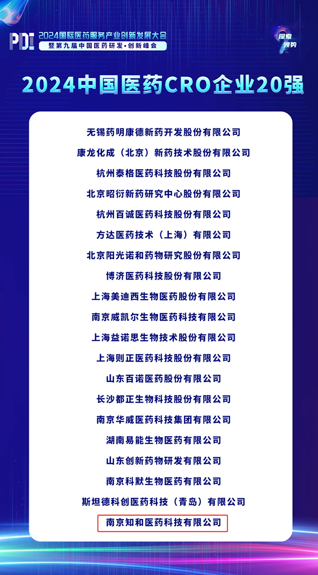 入選《2024中國醫藥CRO企業(yè)20強》,是對南京知和(hé)醫藥研發實力與行(xíng)業(yè)影響力的(de)認可(kě),是對南京知和(hé)醫藥在醫藥行(xíng)業(yè)中的(de)卓越表現和(hé)持續努力的(de)充分(fēn)肯定,是知和(hé)團隊共同努力的(de)成果的(de)體現。自2018年成立以來,南京知和(hé)醫藥本著(zhe)以臨床需求爲導向、創新研發爲首任、客戶需求爲中心的(de)宗旨,緻力于爲醫藥行(xíng)業(yè)及廣大(dà)客戶提供更爲優質高(gāo)效的(de)“企業(yè)發展規劃及市值管理(lǐ)、産品立項評估與管線規劃、藥學研究、非臨床研究方案制(zhì)定和(hé)項目管理(lǐ)、臨床研究、注冊申報”等一站式綜合服務。通過高(gāo)質量、高(gāo)效率、高(gāo)性價比的(de)研發服務,助力客戶及時抓牢一緻性評價、MAH新政及集中采購(gòu)的(de)良機,賦能(néng)企業(yè)發展提升,合作各方均取得了突飛(fēi)猛進的(de)高(gāo)質量發展。