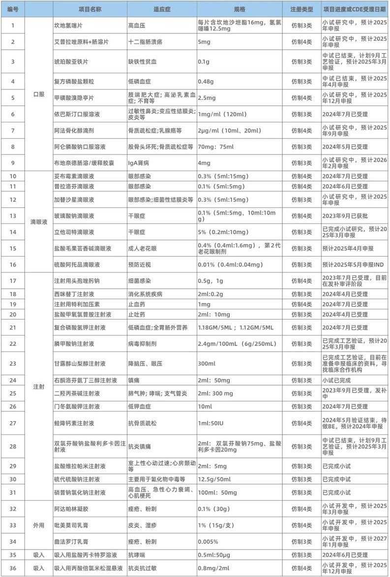 仿制(zhì)藥品種推薦