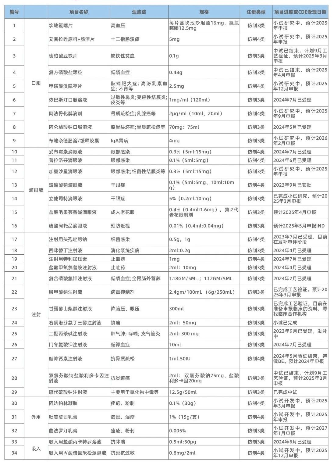 仿制(zhì)藥品種推薦