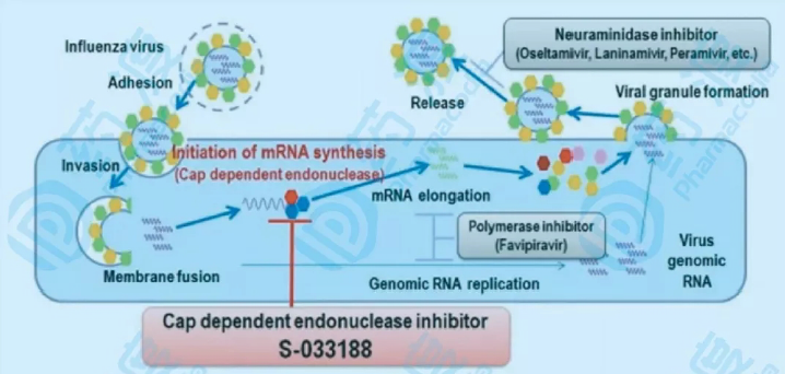Marbaloxavir (Xofluza) is a Cap-dependent endonuclease inhibitor and the only approved single-dose oral medication for the treatment of influenza. It is also the first antiviral flu drug with a novel mechanism of action to be approved by the U.S. FDA in nearly 20 years. It has been approved in multiple countries, including the United States, Japan, and China.