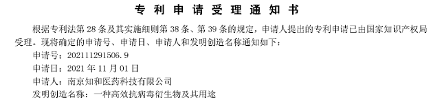Currently, the patents for other PA inhibitors under research or already on the market have long patent terms, making generic versions unlikely in the short term. The LHZH project developed by Nanjing Zhihe has already applied for a patent (Patent No.: 202111291506.9), and has independent intellectual property rights, free from restrictions imposed by related patents.