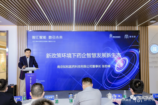 During the thematic sharing session, invited guests exchanged ideas and shared experiences on the topic "How to Build a Digital Economy Ecosystem for a Smart Mufu". As a corporate representative, Mr. Zhang Zhefeng, Chairman of Nanjing Chiheal Pharmaceutical Technology Co., Ltd., delivered a presentation titled "A New Ecosystem for Smart Development of Pharmaceutical Enterprises in the New Policy Environment".